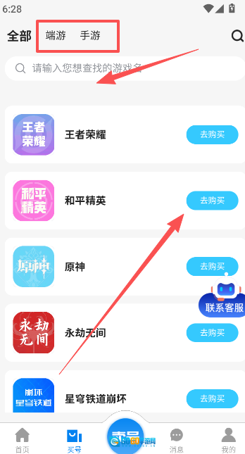 3、在买号服务版块,挑选你想购买的游戏商品,例如购买端游之类的。