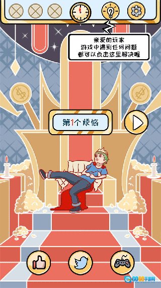 ③把主角叫醒后,点击一下主角头上的皇冠,等主角身上的欧皇之气消散了,再去按那个开关