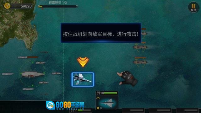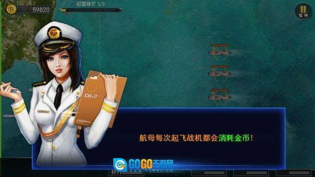 1、启动模拟飞机大作战,进入初始界面,该界面包含副官介绍以及战役地图展示,在熟悉相关引导信息后,进入战役选择页面。