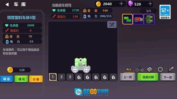 战车组装:在车库界面,玩家能够自由组合游戏中获取的各类零件。车身决定基础防御能力与载重上限,引擎影响移动速度和加速性能,武器系统则决定攻击手段和伤害属性。科学的组合比一味堆叠高级零件更关键。