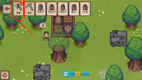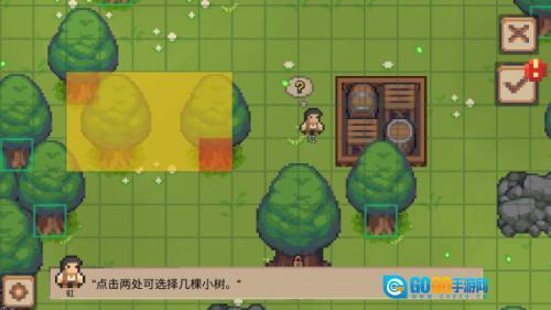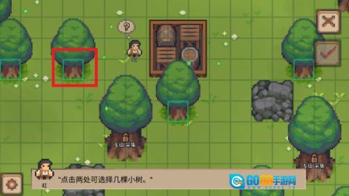 4.拖动适配的工具,使村民借助工具砍伐树木,从而收集木材资源。