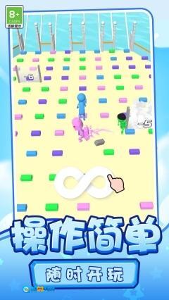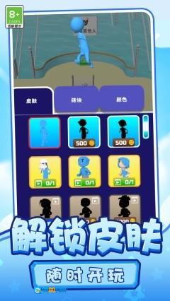3、通过灵活操控角色来高效收集砖块,只要在时间结束前顺利登顶就能获得胜利。