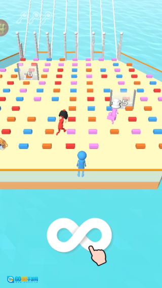 1、点击进入游戏后,操控角色去收集和自身颜色一致的砖块,用这些砖块搭建云梯,从而向上挑战关卡。