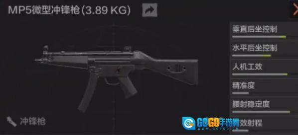 3、MP5:作为冲锋枪,MP5在射速和稳定性方面表现十分出色,中近距离作战时稳定性也很好。再加上获取难度和上手难度都较低,是非常值得推荐的武器。它对配件的要求不高,新手也能轻松压枪,唯一的不足是伤害偏低,远距离作战表现较差,但整体效果依然不错,非常推荐使用。