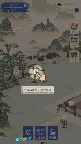 点击派遣弟子去山林中,或者石场执行任务,如图: