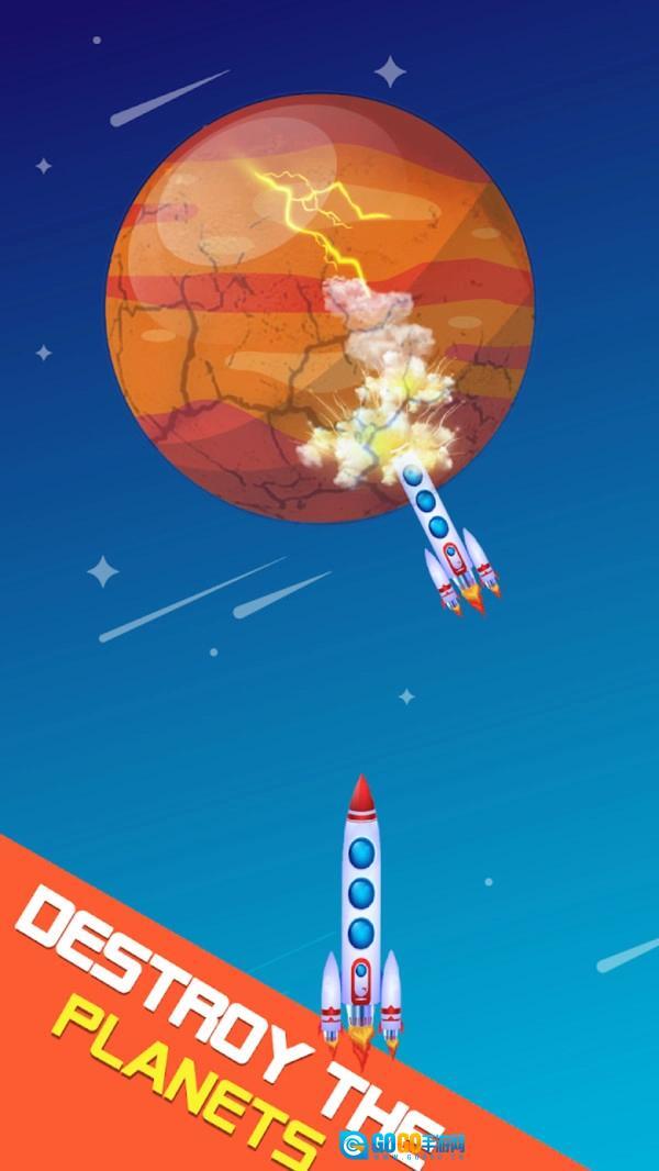 5、这里面存在着大量星球,它们的种类十分丰富,玩家需要对这些星球进行破坏,通过发射各式各样的火箭来摧毁其中不同的星球。