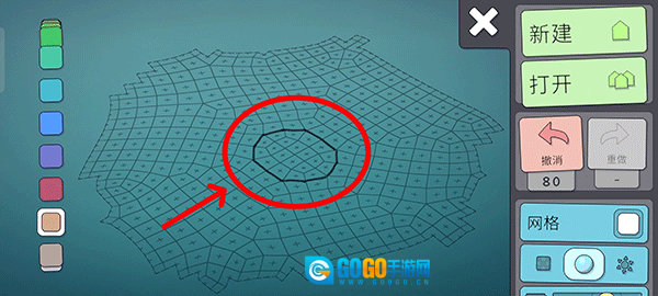 用双指在屏幕上左右滑动,去寻找像圆形、六边形这类能构成闭环的规律性布局。