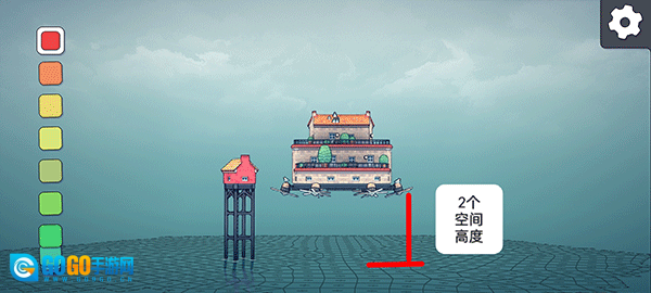 长按浮空层和基础层之间的建筑块,保持1秒后松开手,就能把它删除掉。