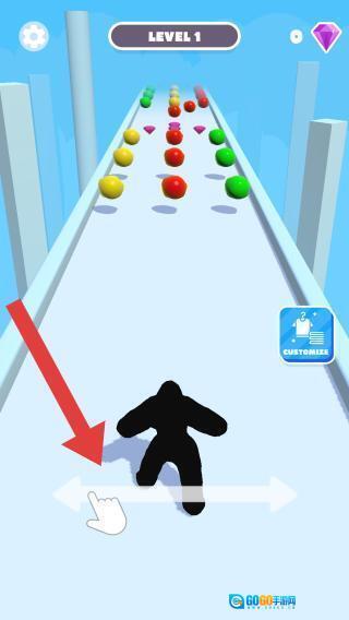 2、玩家在跑酷过程中遇到不同颜色的圈圈时,需要拾取对应的物品,以此增强果冻人的能量。