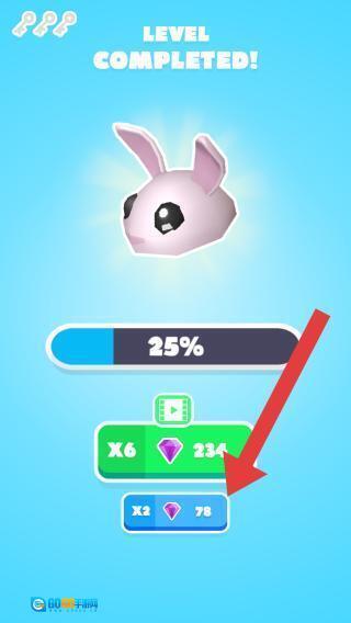 3、解锁皮肤需要通过大量关卡,当前进度是25,这一关奖励了78颗钻石,能将增益效果翻倍后继续挑战下一关。