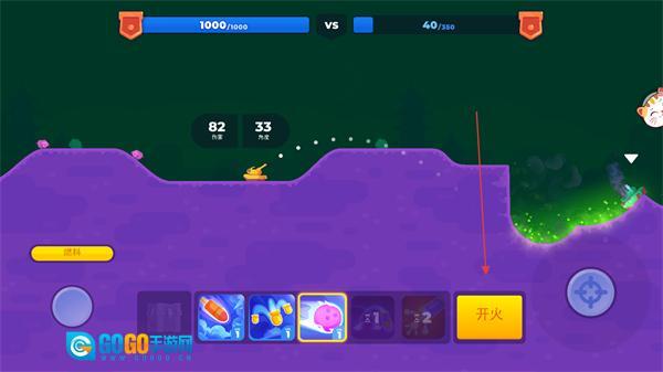 2、锁定敌方目标后,点击下方的开火按钮,即可发射炮弹对敌方坦克发起攻击。