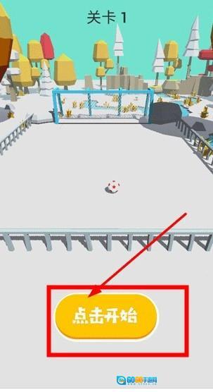 打开后,点击“开始”进入闯关模式。在这个模式里,玩家要操控足球把球踢进球门,以此顺利完成关卡的挑战。