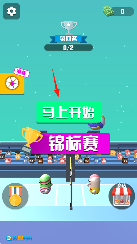 1、赛事选择“即将开启”的普通赛与“锦标赛”晋级赛,选定对应模式后,操控绿条纹、粉黄这两个角色参与比赛,目标是提升当前第四名的排名。