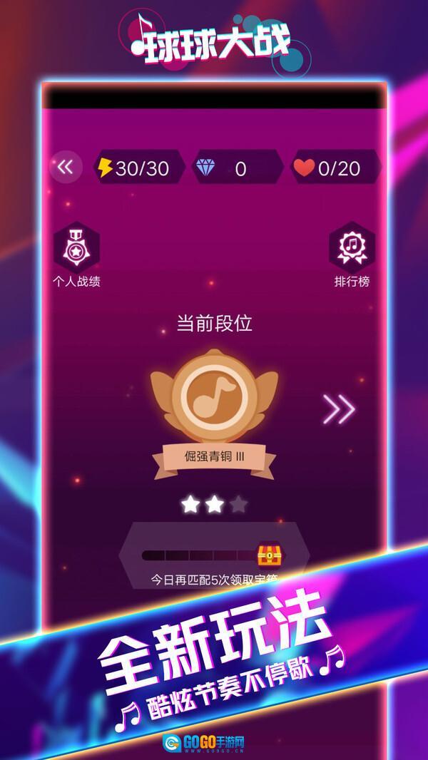《球球大战》是一款极具魔性、让人一听就上头的音乐类游戏。它有着清新的画风和梦幻般的场景,还设有PVP匹配赛等多种挑战模式,能让你和成千上万的音乐达人一较高下,争夺歌王称号。游戏操作简单,只需单指点触就能一秒上手,快来跟着古灵精怪的球球们,一起开启这场充满乐趣的音乐之旅吧!