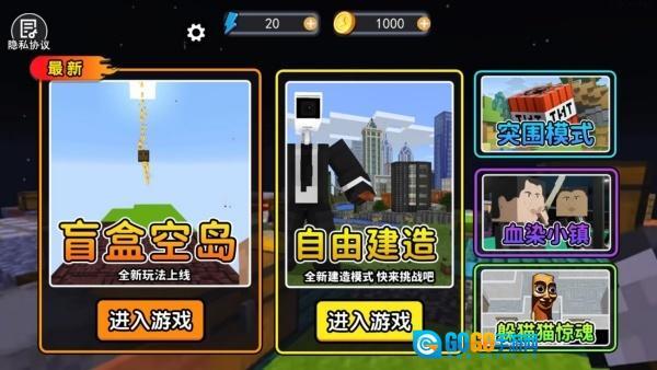 盲盒抽奖是一款把随机惊喜和自由创造巧妙结合的像素风沙盒游戏。在这个不断变化的空中世界里,玩家会被随机传送到独特的浮空岛上,依靠打开天上掉落的资源盲盒来获得所有建造材料。