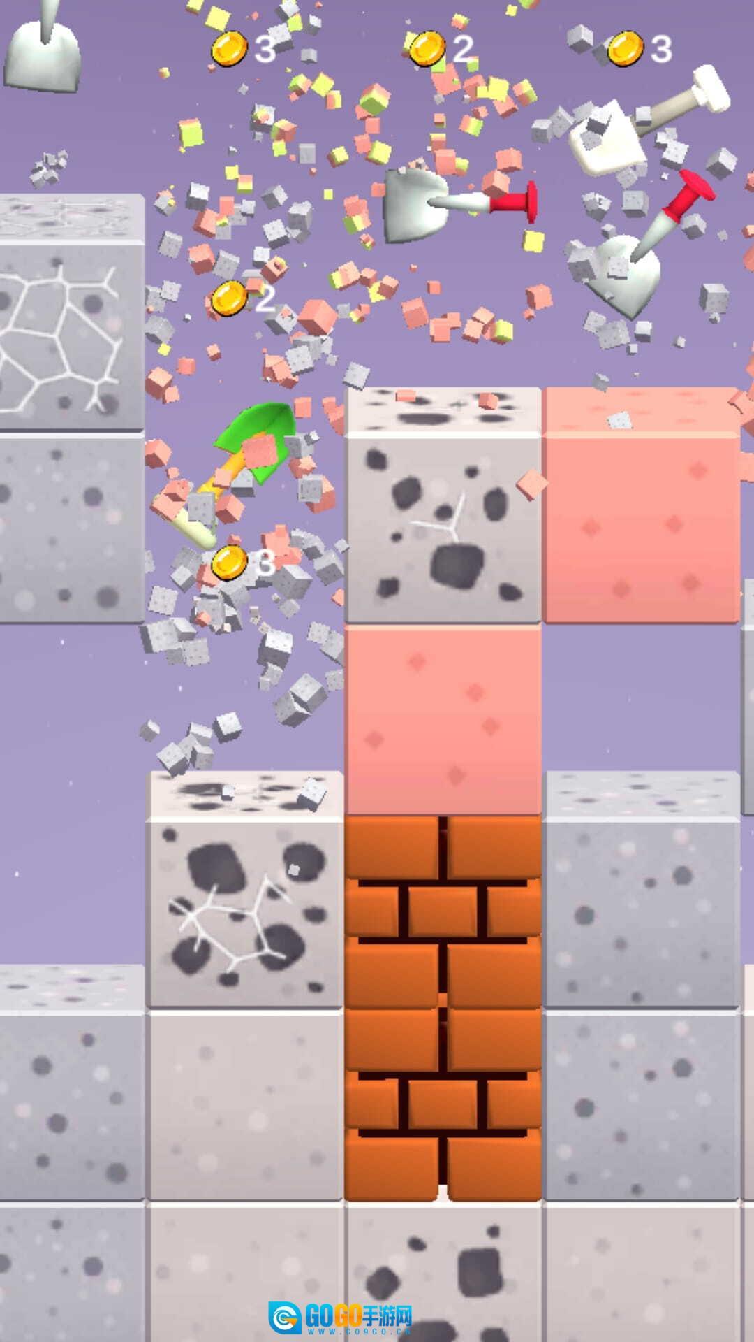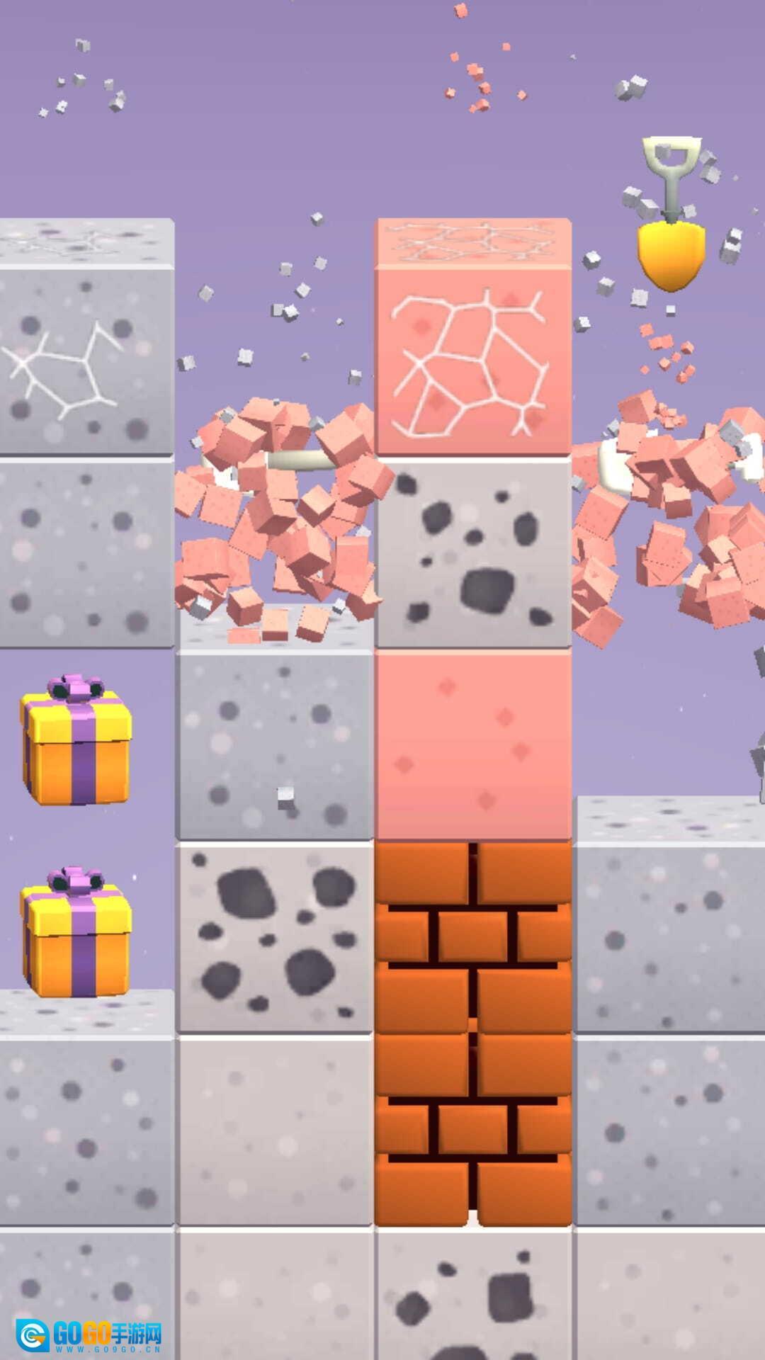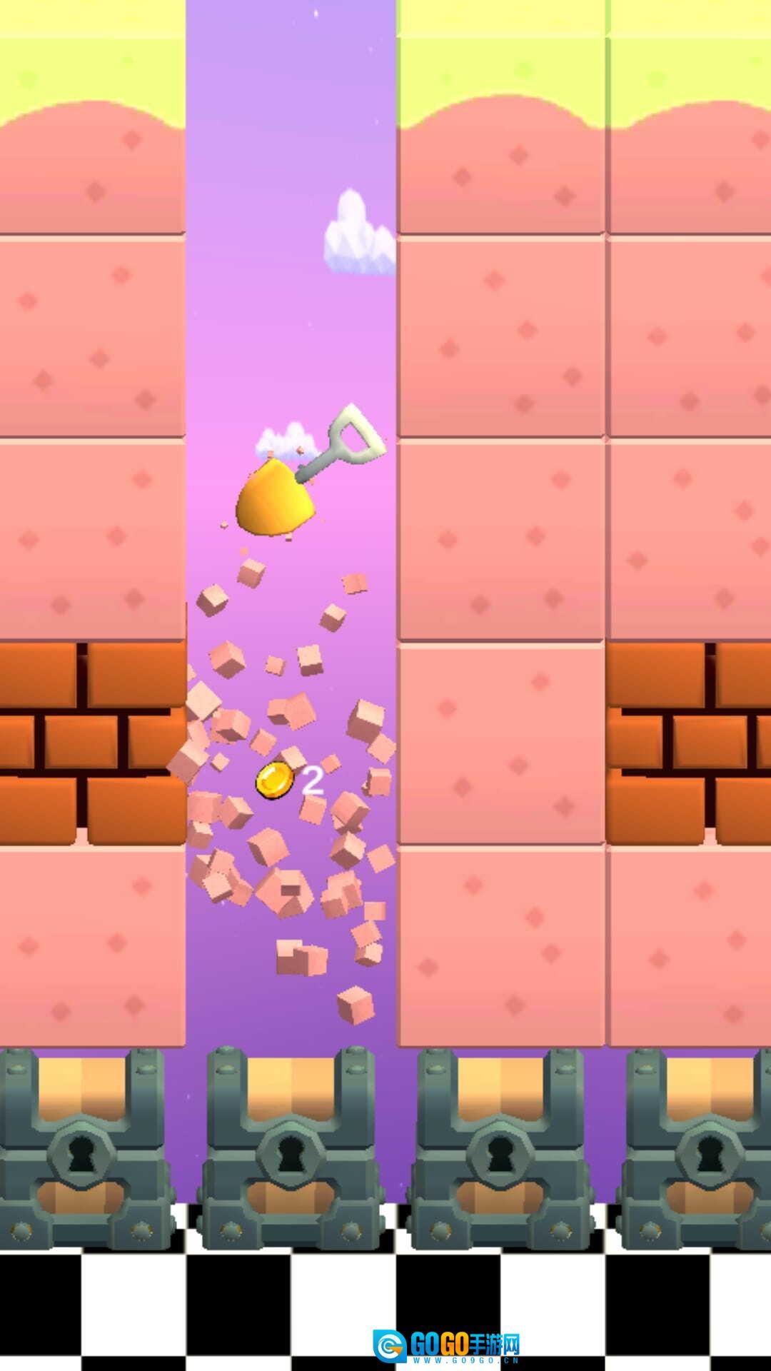 核心玩法:通过点击屏幕操控铲子进行挖墙操作,挖墙过程中积累的进度会转化为资源,最终目标是获取位于深层的神秘道具。