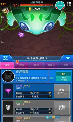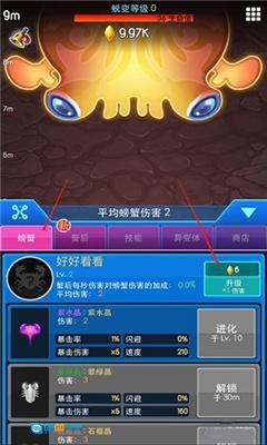 2、潜力挖掘:点击螃蟹即可开展角色培养,每只螃蟹都具备独特的潜力,玩家能够化解部落的危机,迎战新的敌人。