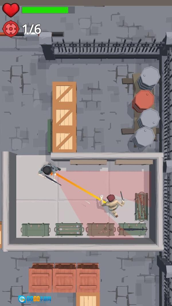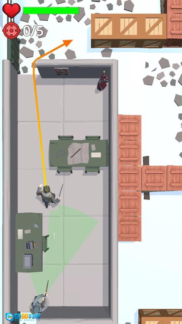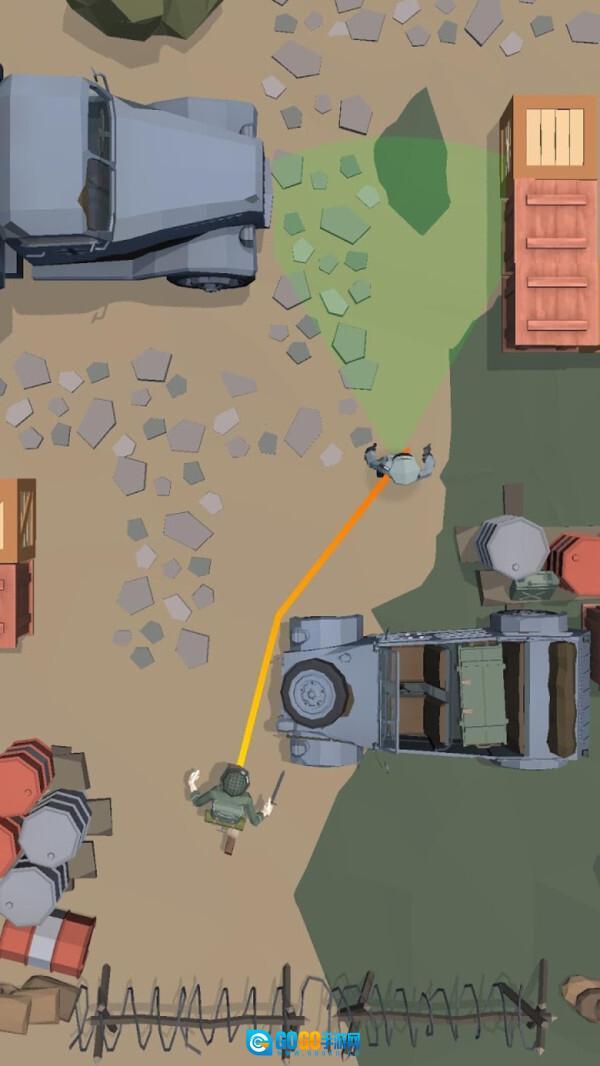 1、进入关卡后,留意左上角的目标进度(例如显示为2/2),利用木箱、油桶这类掩护物,通过点击来规划移动路线,注意不要暴露在敌人的视线范围内。