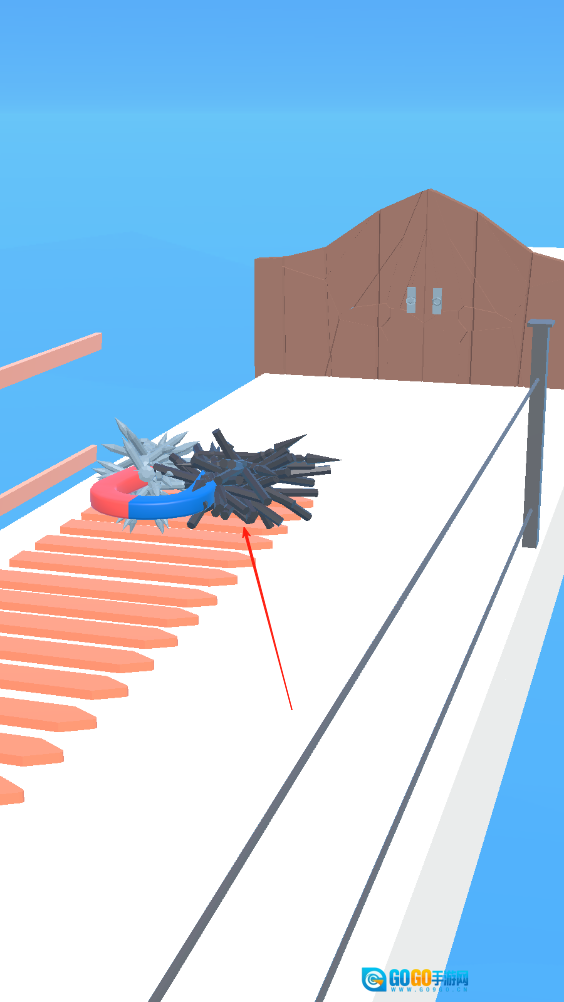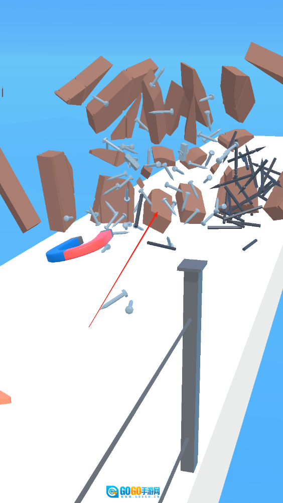 1、点击屏幕上的磁铁就能向前移动,它会吸附前方出现的所有铁器,收集得越多,之后的攻击力就会越强。