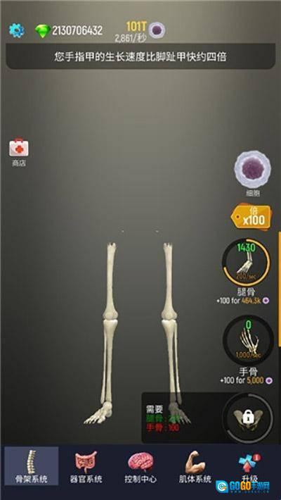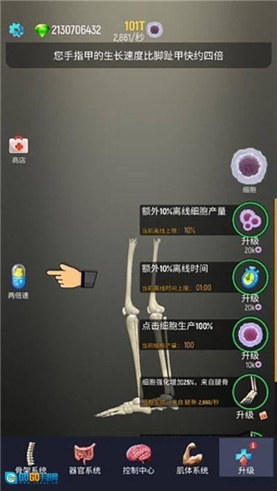 3、在持续的进化进程里积累更多金币,借助金币实现人体的逐步强化。
