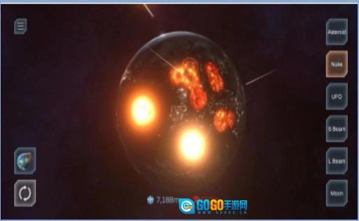 2.多样的星球毁灭途径:游戏中设有核导弹、激光、小行星撞击等多种摧毁星球的手段,玩家能够依据自身偏好与策略,挑选出最适合的毁灭方式。