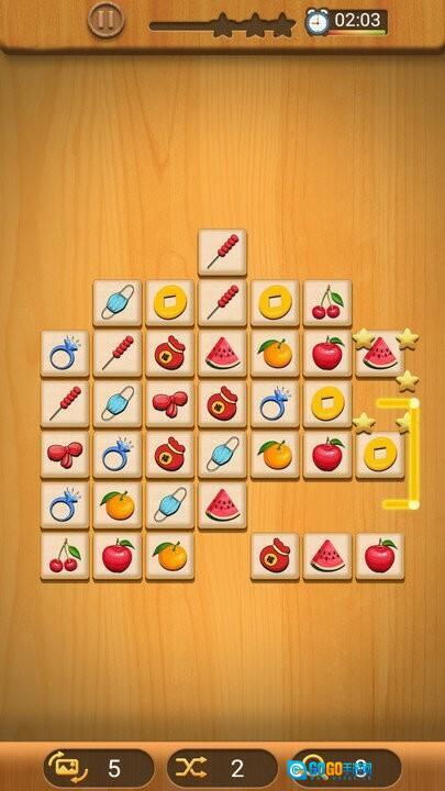 2、点击相同的两种水果进行链接。
