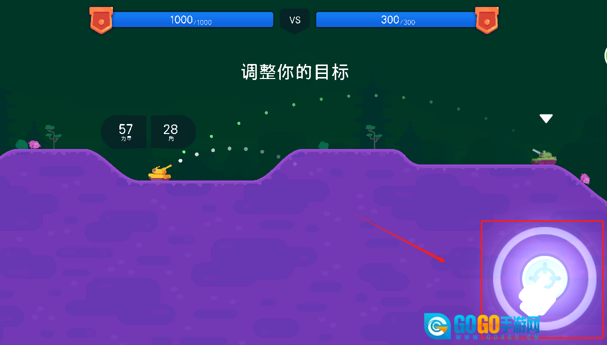 3、调整好弹道就点击开火,打爆对面的坦克。