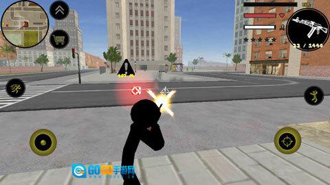 左侧控制移动与加速,右侧负责绳索、攻击(含跳跃功能)以及跳跃操作;右上区域的武器切换、血量与经验值均实时刷新,状态一目了然。玩家可自由选择玩法,与其他帮派成员展开交火——击杀敌人能获取经验,累计击杀数达到一定程度会提升星级,届时警察及周边角色将对你重点“关照”,发起猛烈攻势。如何在激战中存活、并成功消灭对手,便是你需要完成的核心任务。
