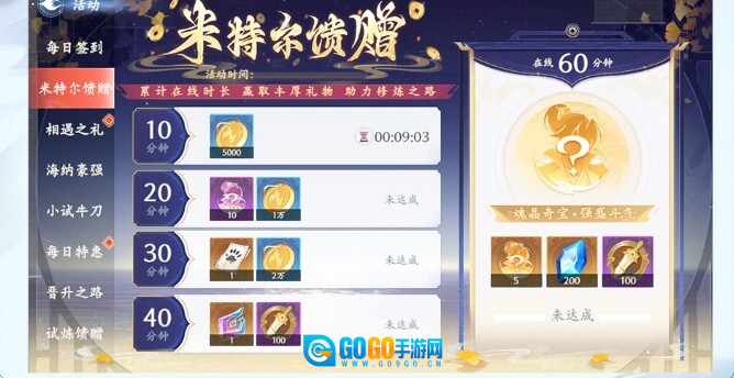 满足在线时长就能获得角色信物、星玉、狩猎线索、魂晶和天阶信物等道具,可千万别忘记领取呀!