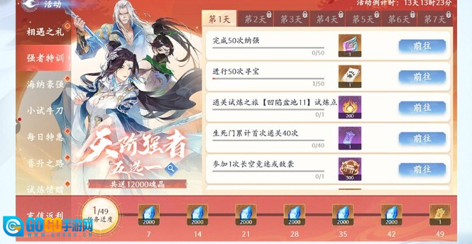 完成新手七日任务,能助力您迅速熟悉游戏玩法。这些任务不仅操作简单,奖励还十分丰厚,只要完成全部任务,就能获得天阶角色五选一的机会!