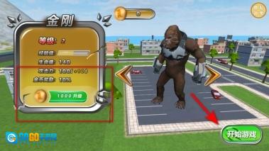 1、消耗1000金币即可升级金刚,其等级、生命值、攻击力等属性将得到提升,破坏能力随之增强,升级完成后点击“开始游戏”即可。
