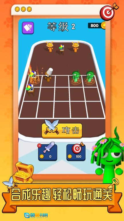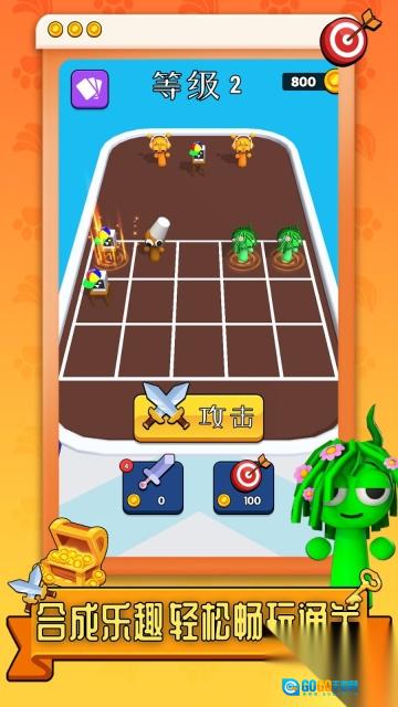 2、可以运用合成升级后的角色与道具,点击攻击按钮后,就能和关卡里的敌人展开战斗,这十分考验策略能力。