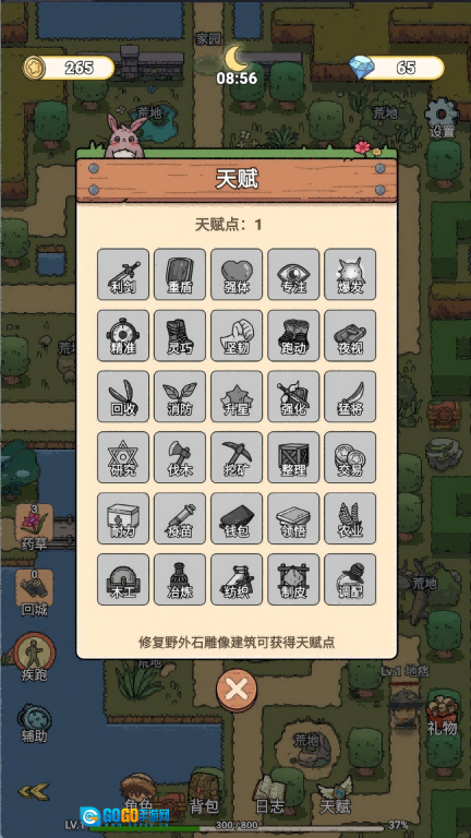 4、要主动去寻找野外的石雕像进行修复,获取天赋点后优先解锁核心战斗天赋,以此增强初期的生存能力。