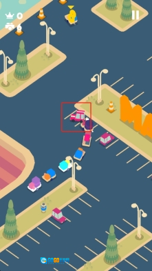1、在道路场景里,我们需要操控红色小车,精准地和同色车辆连接组成车队,行驶过程中还要避开其他颜色的车辆以及路障。