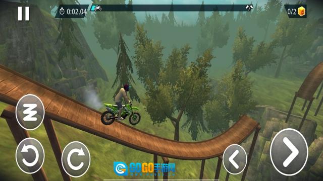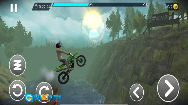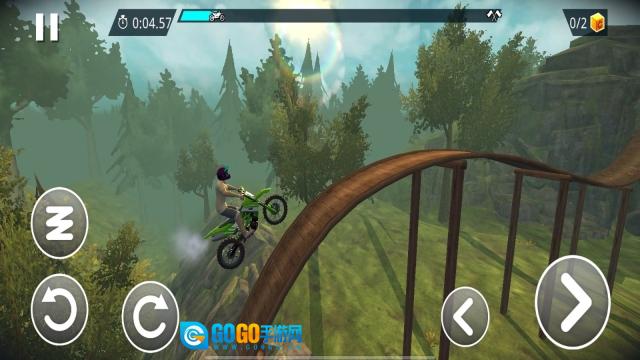 进入关卡后,玩家得留意画面上方的倒计时,必须在限定时间内到达终点,此外还得应对地形带来的挑战,完成各类特技动作。