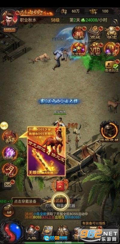 3、这是一款支持合击虐敌的传奇游戏,各种神器神装都能轻松获取并为己所用,爆率相当良心,自带狂暴化技能,神装能直接拉满,热门装备全靠实力获取。