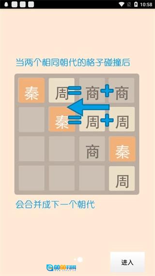 数字2对应夏朝,当它与其他数字合并成4时,就代表商朝,依此类推,直到合成出2048,便能解锁中华盛世。