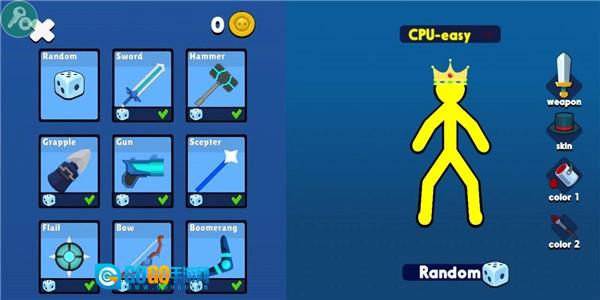 2、开始之前,先设置你的火柴人皮肤和装备吧,点击屏幕右侧就能进行操作了