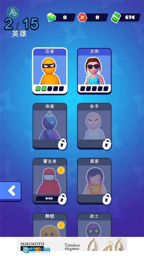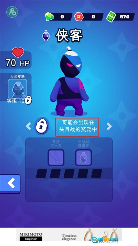 2、大家要在这里留意提升自身技能,躲避敌人的攻击,所有皮肤都已解锁,这是一款十分休闲的动作潜战游戏。