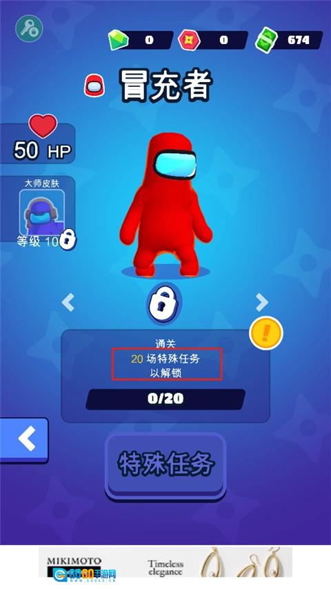 3、点击未解锁的英雄皮肤并进入后可以看到,玩家若要解锁该皮肤,需完成20场特殊任务才能获得。