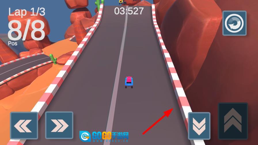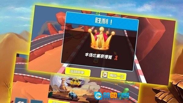 3、冲过终点线完成比赛,根据名次获取金币奖励,用奖励升级赛车的动力、抓地力等性能,挑战更难的山间赛道与更强的对手。