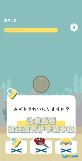 1、在萨卡班甲鱼初始阶段,我们得到的是虚无鱼BasPi的鱼卵形态,此时只需净化脏水,之后便是耐心等待它孵化。