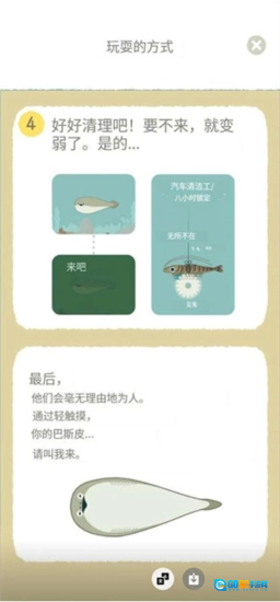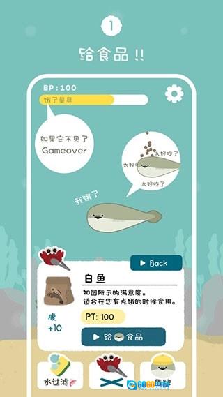 一开始,你会拥有一条呆萌的小鱼苗,需要定时给它喂食、换水,不然它很快就会饿死或者被脏水毒死。喂太多的话它会被撑成“气球鱼”,喂太少又会直接“饿到翻白眼”,手残党忍不住吐槽:养条鱼比带娃还费劲!