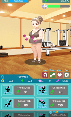 健身房里摆放着各式各样的健身器材,玩家要操控一位胖乎乎的女生在其中使用各类器械锻炼。你得持续努力减重,并且记录下自己的体重变化,看着体重一天天减轻。同时,还能在这个过程中结识帅气的男友,找到理想的工作。