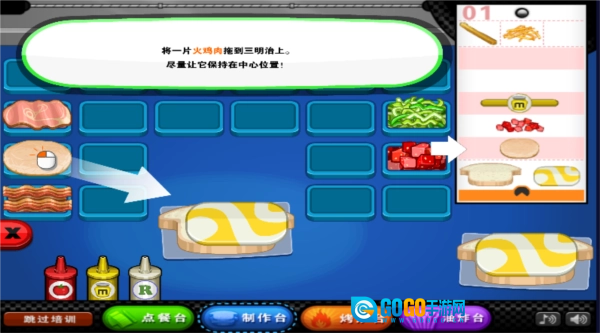 4、接下来便开启营业,你需依据顾客的需求制作三明治。