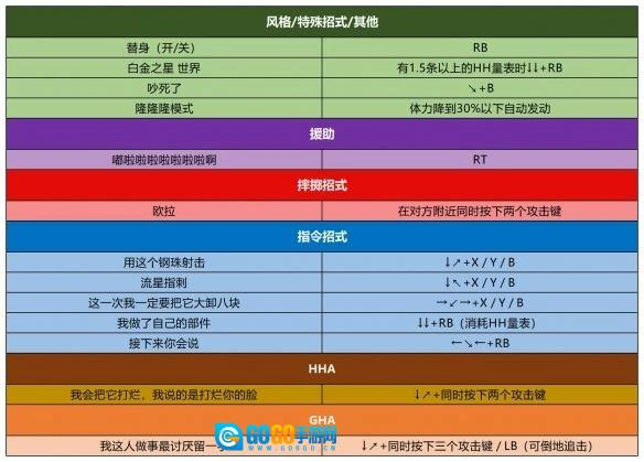 7、右下角的HH能量槽会随着攻击命中逐渐累积:积满1格时触发【简易律动(HHA)】,积满2格及以上则能激活高伤害的【GHA】必杀技。掌握能量积攒与释放的节奏,是打出爆发伤害的关键技巧。