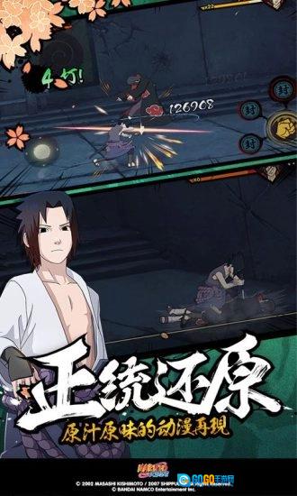 2、选取经典火影忍者疾风传的故事情节,高度还原动漫剧情,原生态复刻战斗系统;