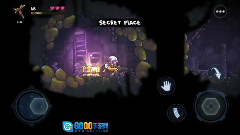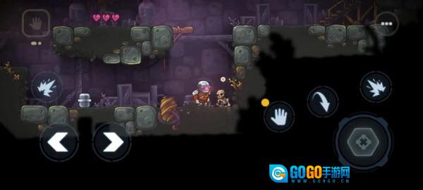 4、取走钱袋后跳到右侧的两个骷髅处(站在石头边缘会打滑掉落)。