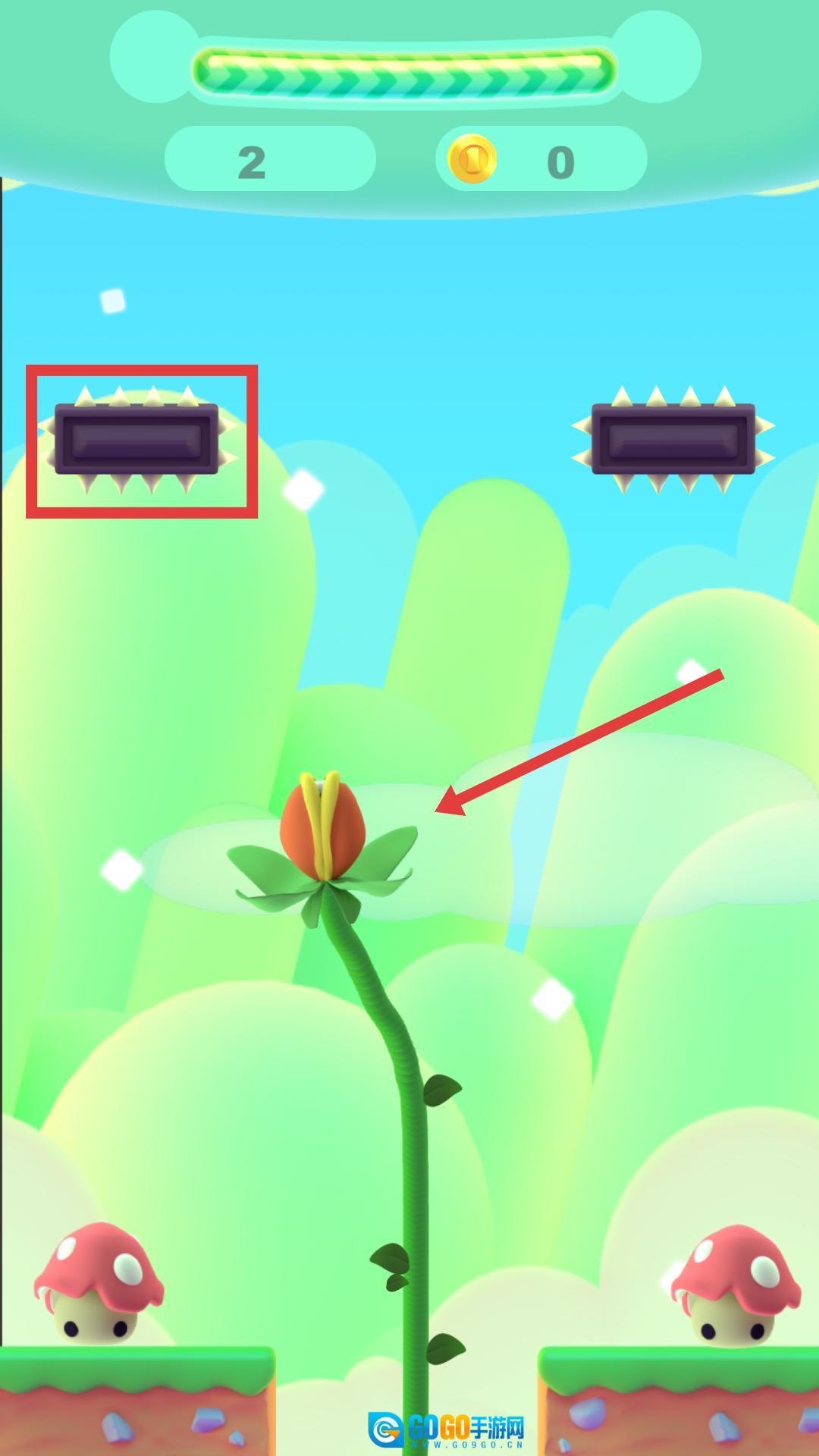 2、在游戏里,玩家需要操控植物进行移动,当遇到带有尖刺的障碍时,要提前规划好行进路径,通过避开尖刺来提高闯关的效率。