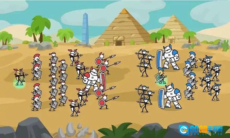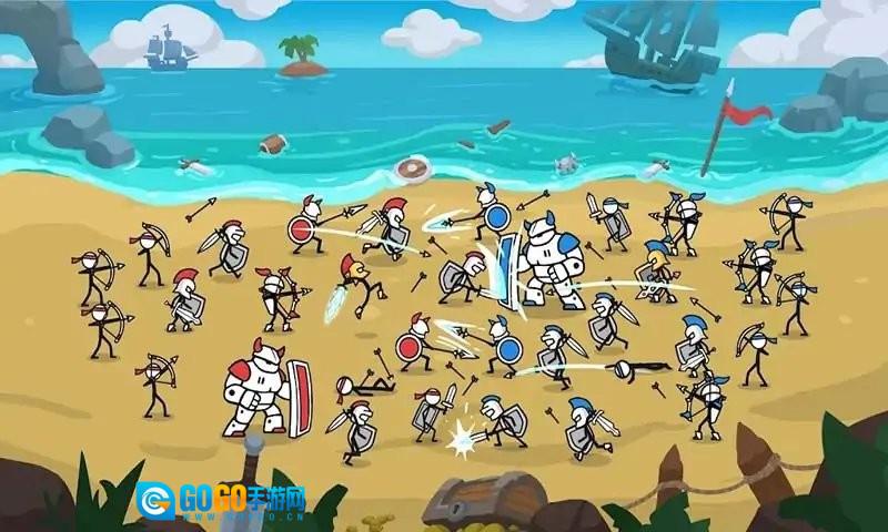 1、火柴人风格设计:以简洁明快的火柴人形象打造各类兵种,借助鲜明的色彩来区分不同阵营,使战场局势一目了然,为玩家带来别具一格的视觉体验。